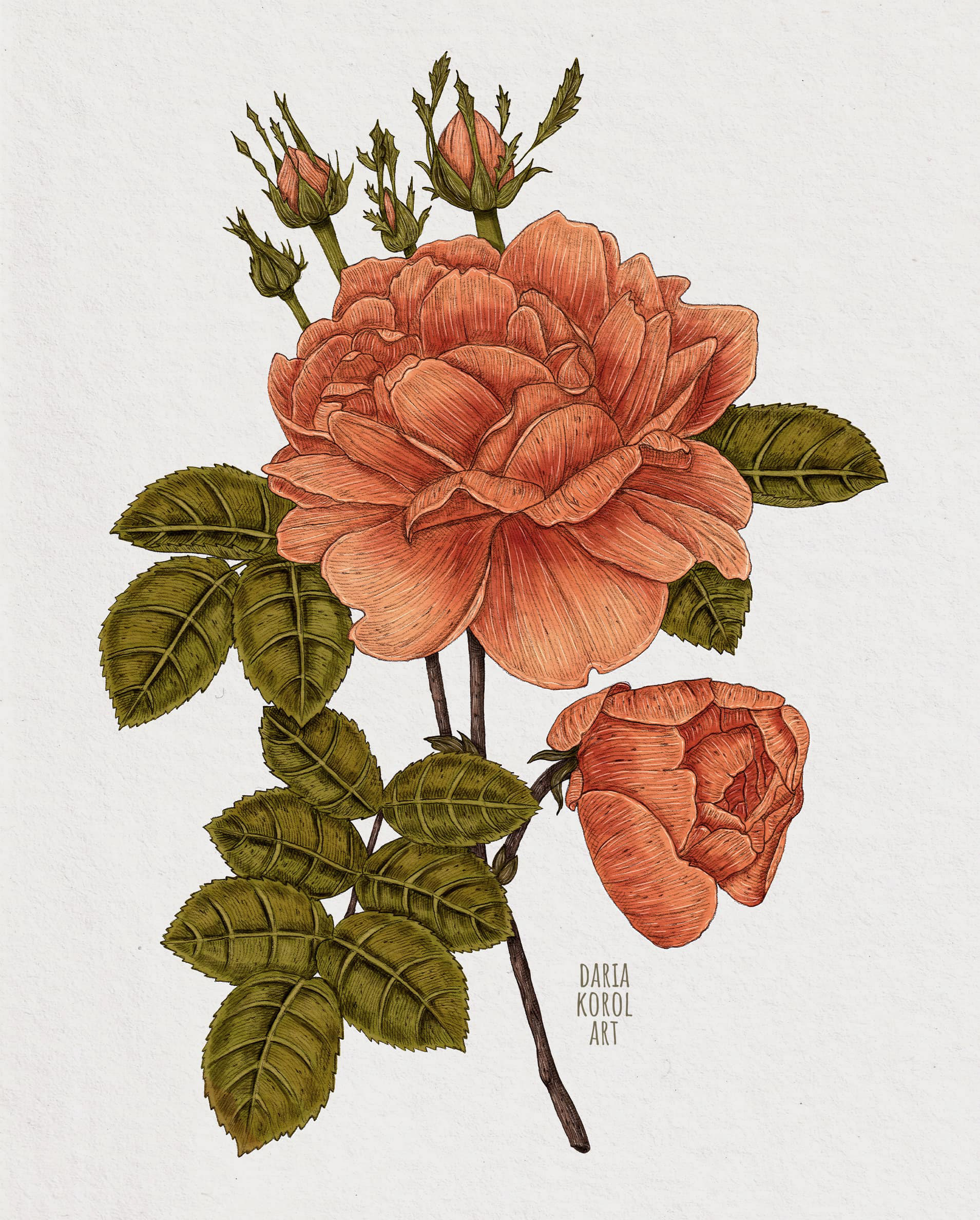 Vintage Hand Drawn Rose